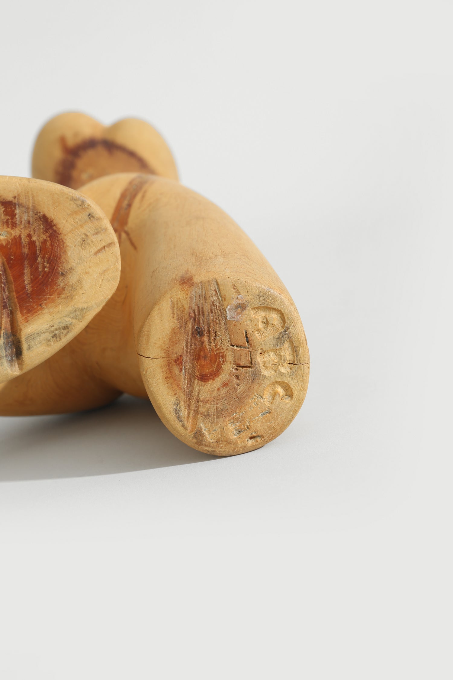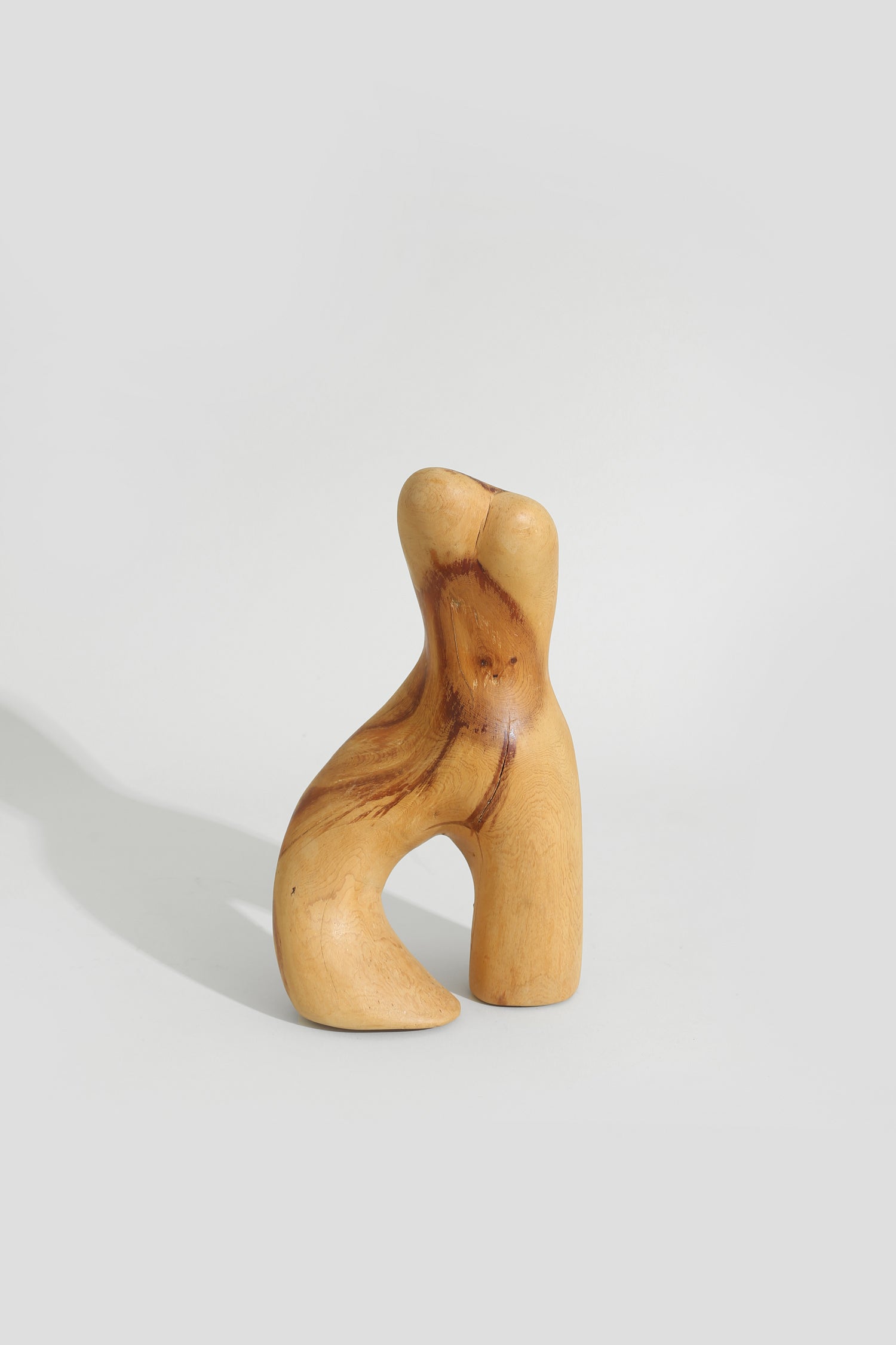 Abstract carved wood torso sculpture, dated and signed on underside, 1977. Organic, biomorphic form with smooth hand-carved contours and visible natural grain throughout. A one-of-a-kind sculptural object.