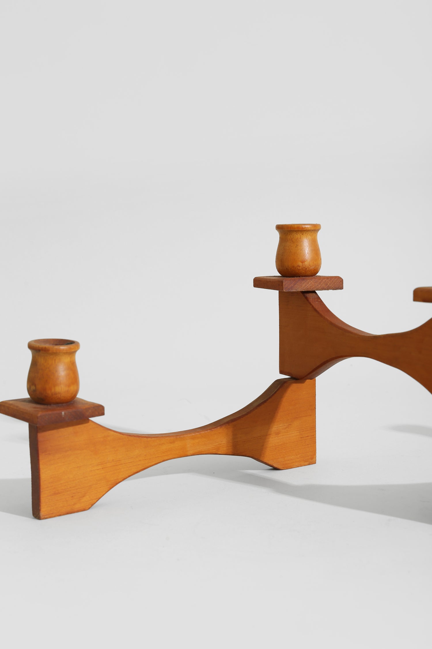 Wooden candelabra in stunning architectural form. Designed to contract and expand, the candleholder adjusts in length—offering flexibility in scale and styling.