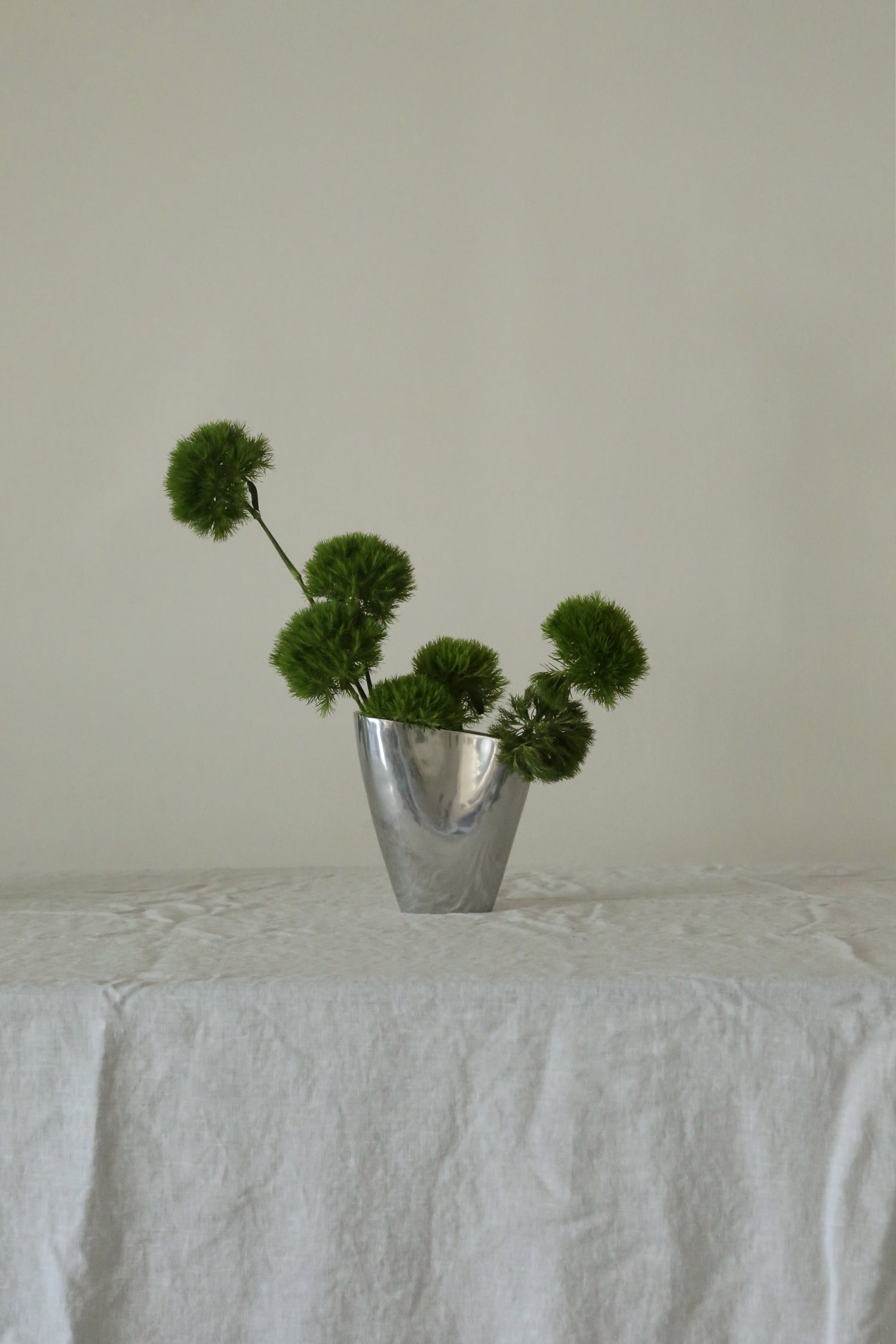 A sculptural metal vessel with beautiful organic curves. Stunning for a full bouquet of your favorite flowers, and equally striking as a standalone sculptural object.