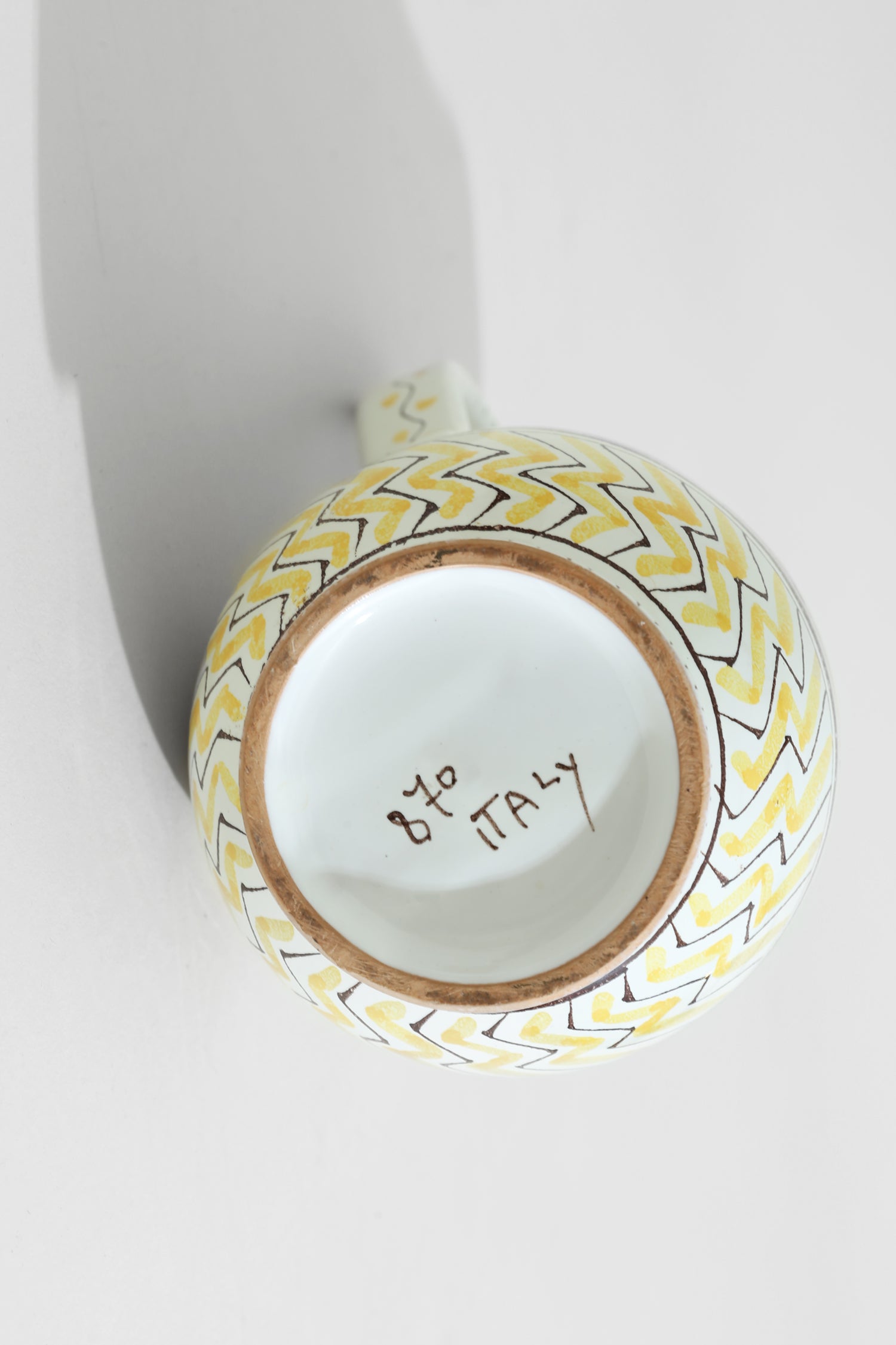 Beautiful Italian pottery form with a graphic fish motif. A sculptural ceramic for the shelf, a vessel for fresh stems, or an artful accent in the kitchen. Made in Italy, marked on bottom.
