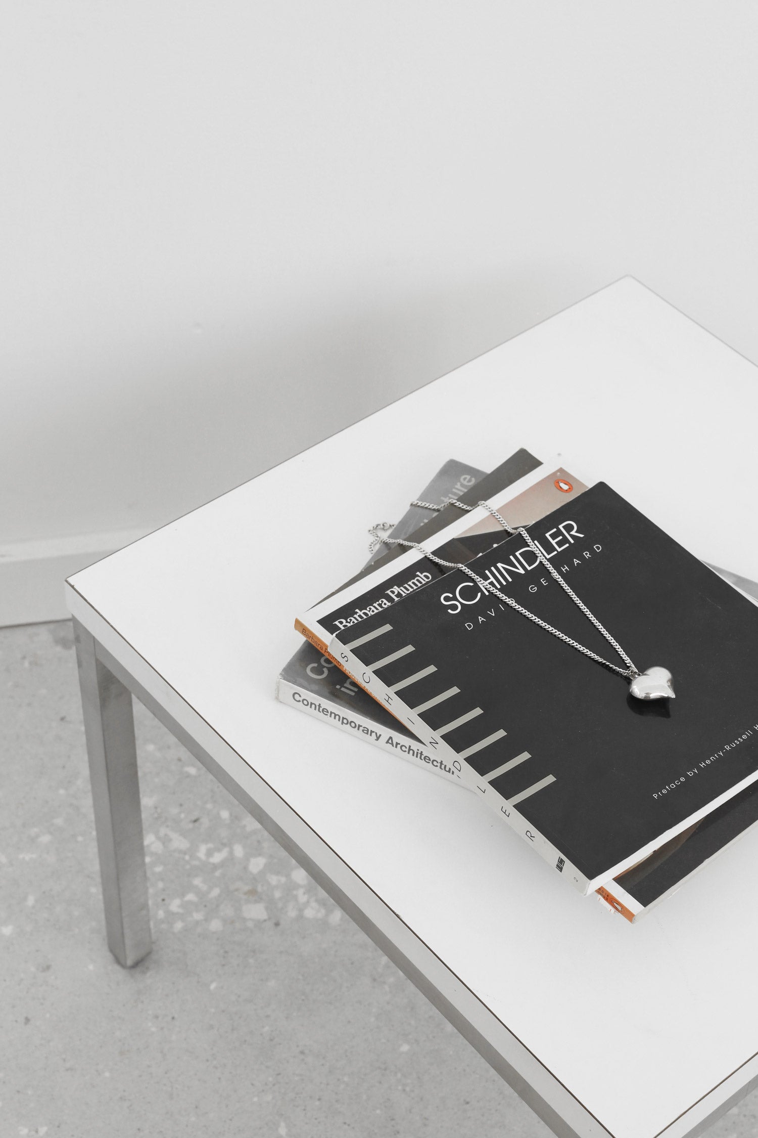 1970’s square side table with a brushed metal frame and white top. Perfect beside a chair, layered in a seating area, or used as a pedestal for books and objects.