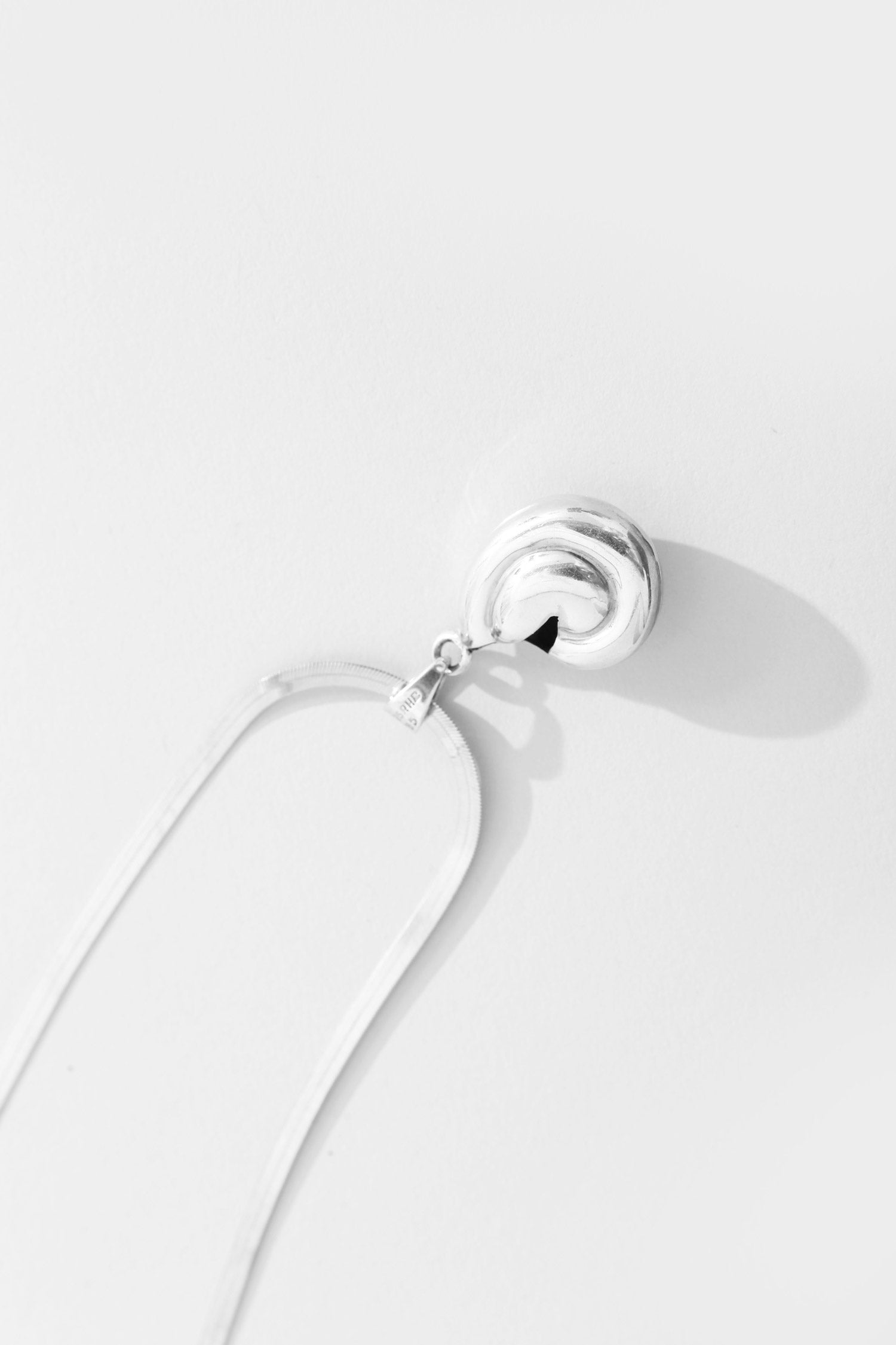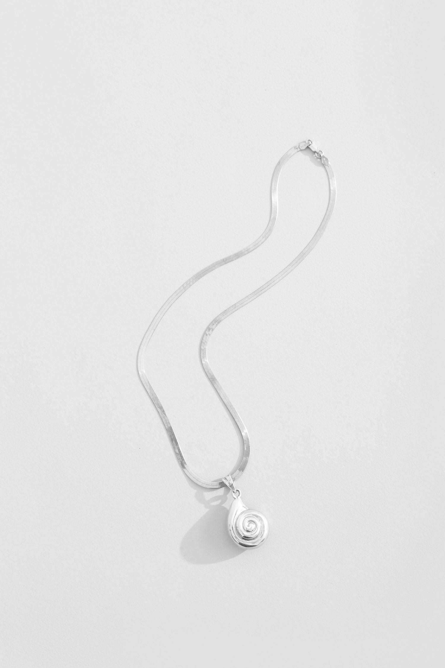 Italian herringbone necklace with shell pendant. Both marked 925, sterling silver.