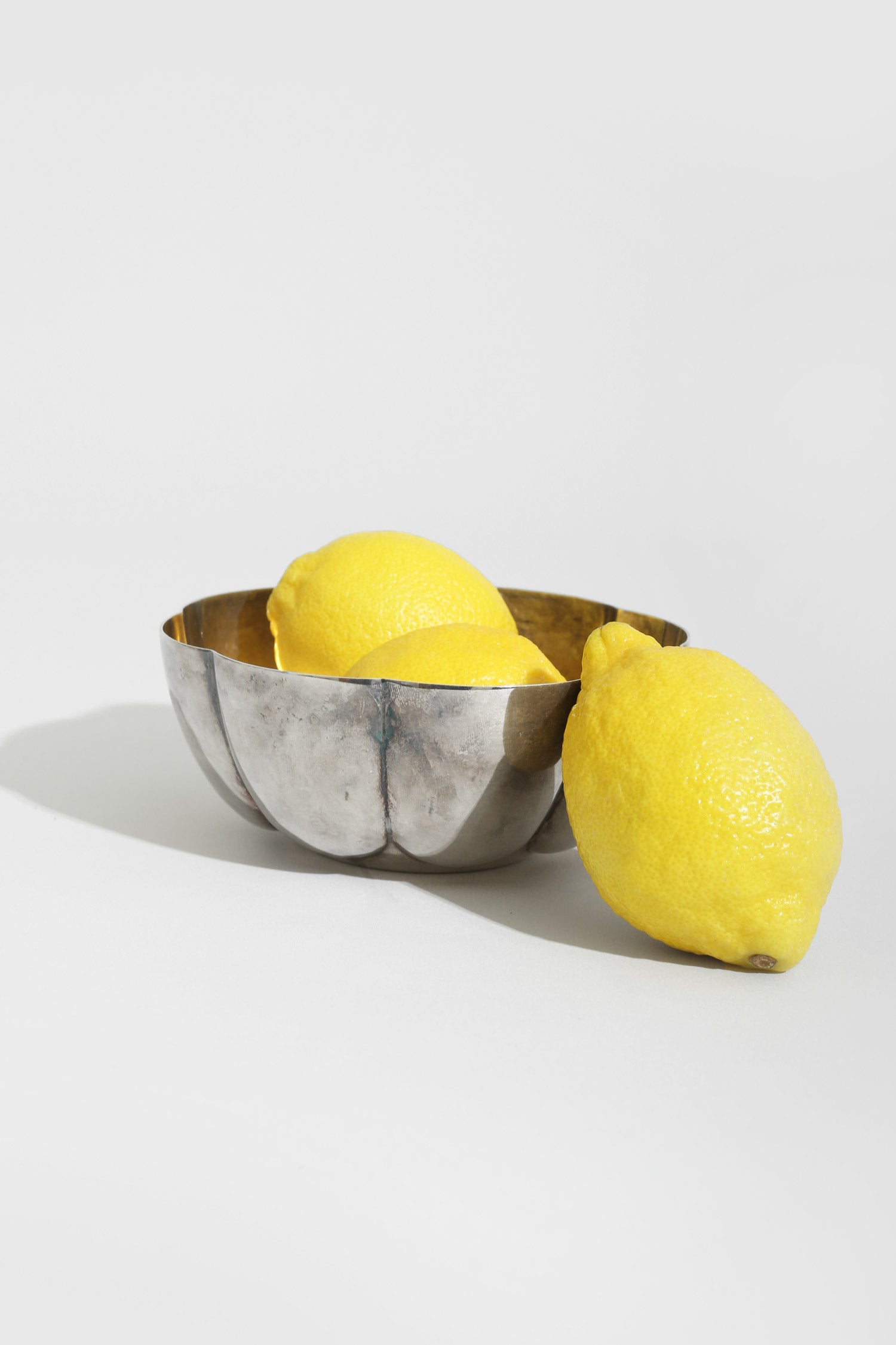 Vintage scalloped silver bowl with a reflective, petal-like form. Perfect as a catchall, serving dish, or delicate accent that adds quiet shine to any surface. ‘M.E.’ marked on bottom.