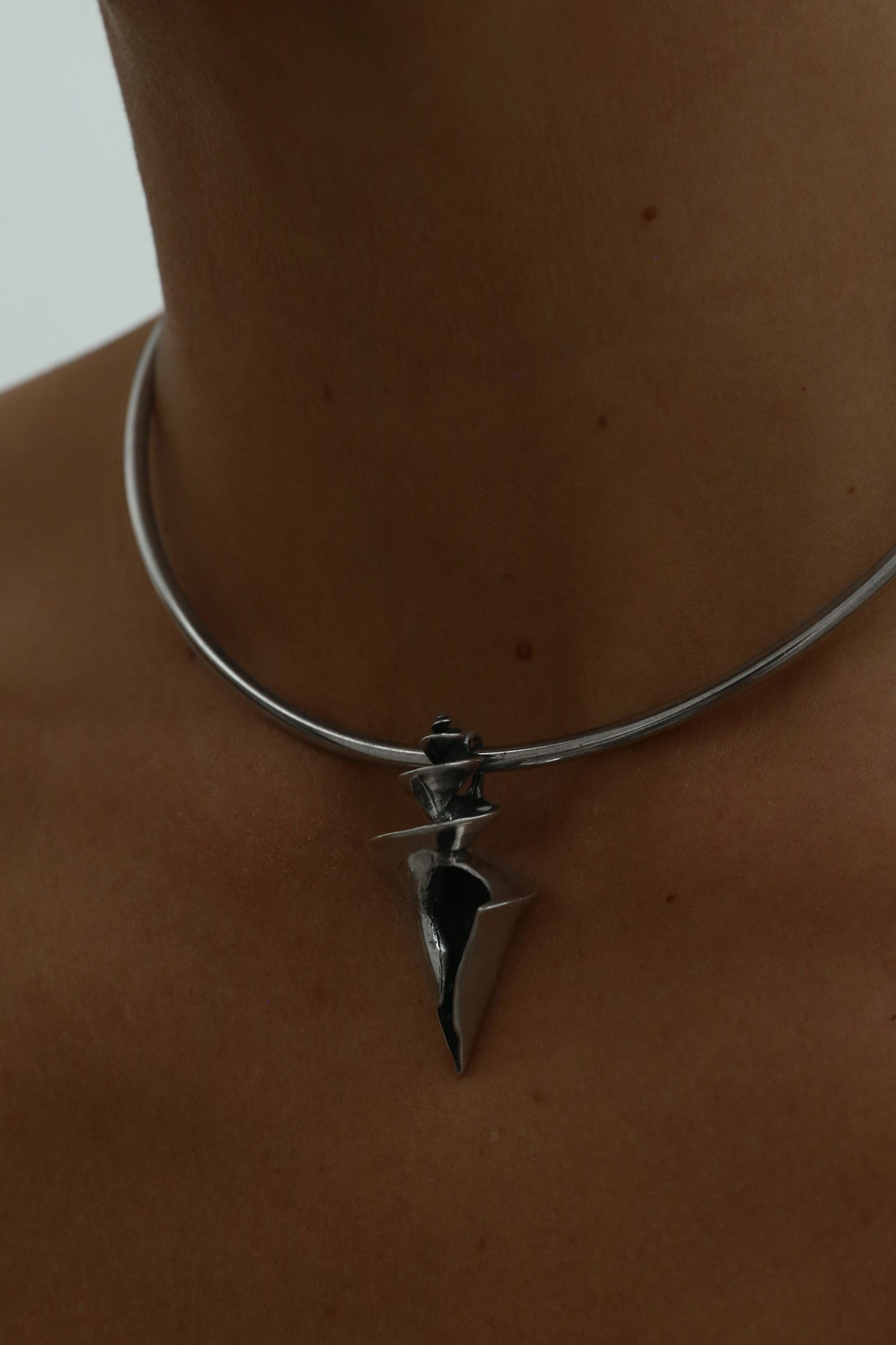 Sterling collar necklace with spiral shell pendant. Both marked 925, sterling silver.