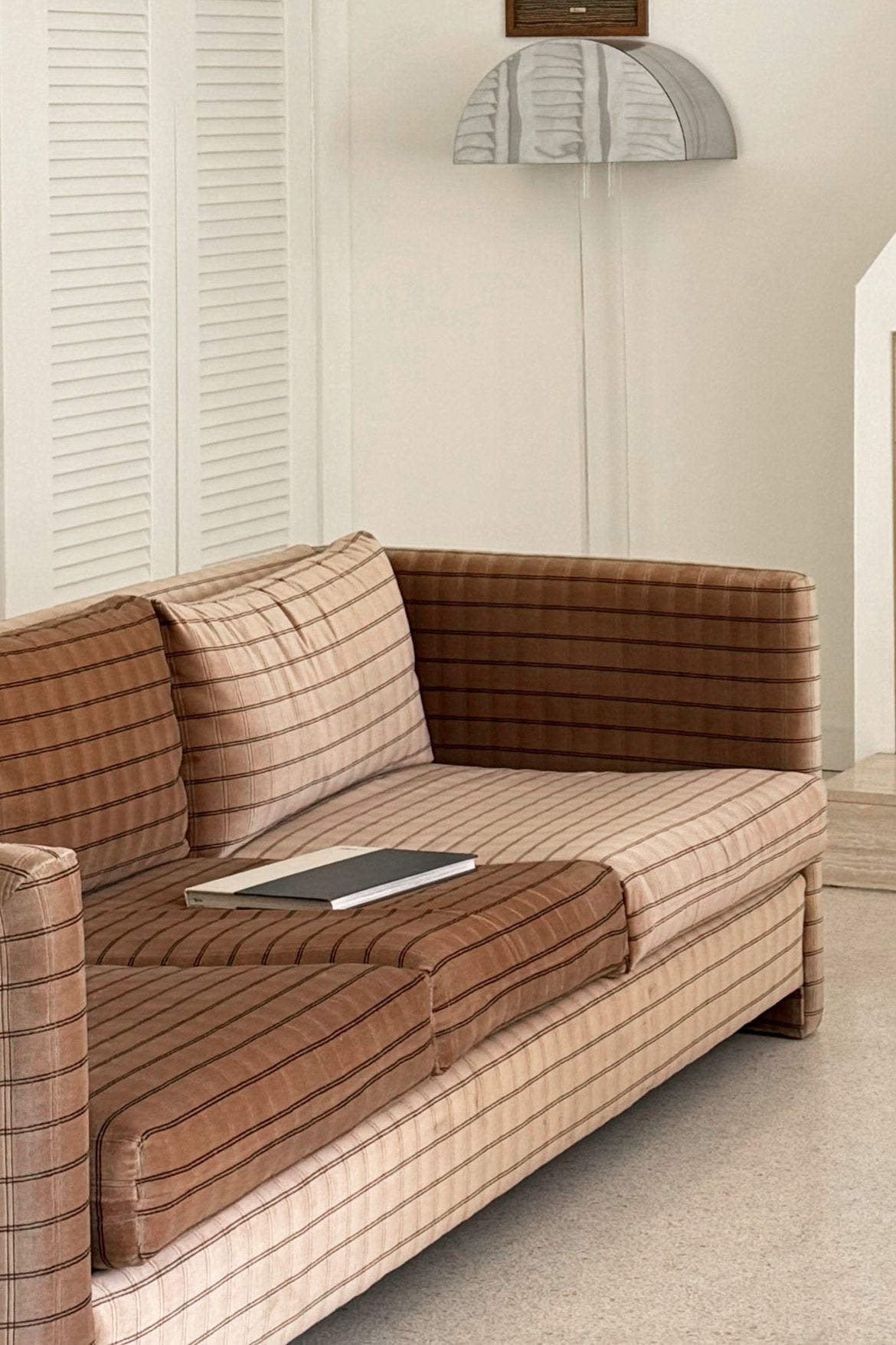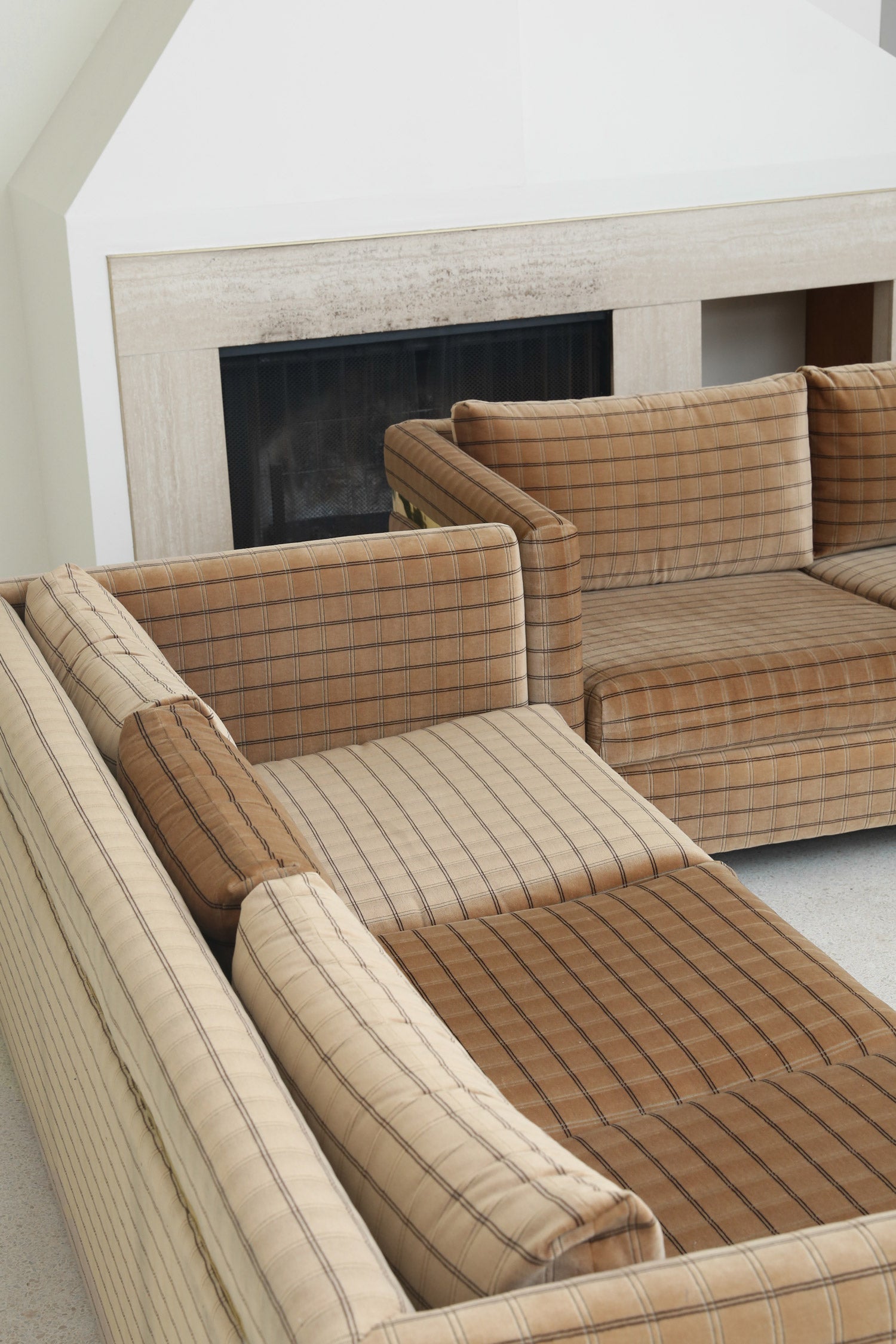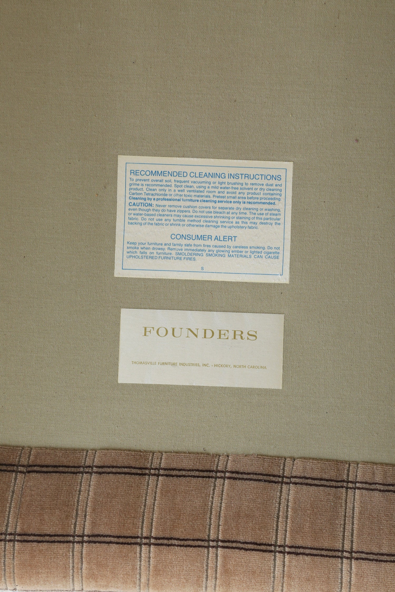 Rare 60/70s plush velvet sofa in a warm camel tone, featuring a subtle grid pattern that adds depth and structure. Made by Thomasville for their Founders Collection.